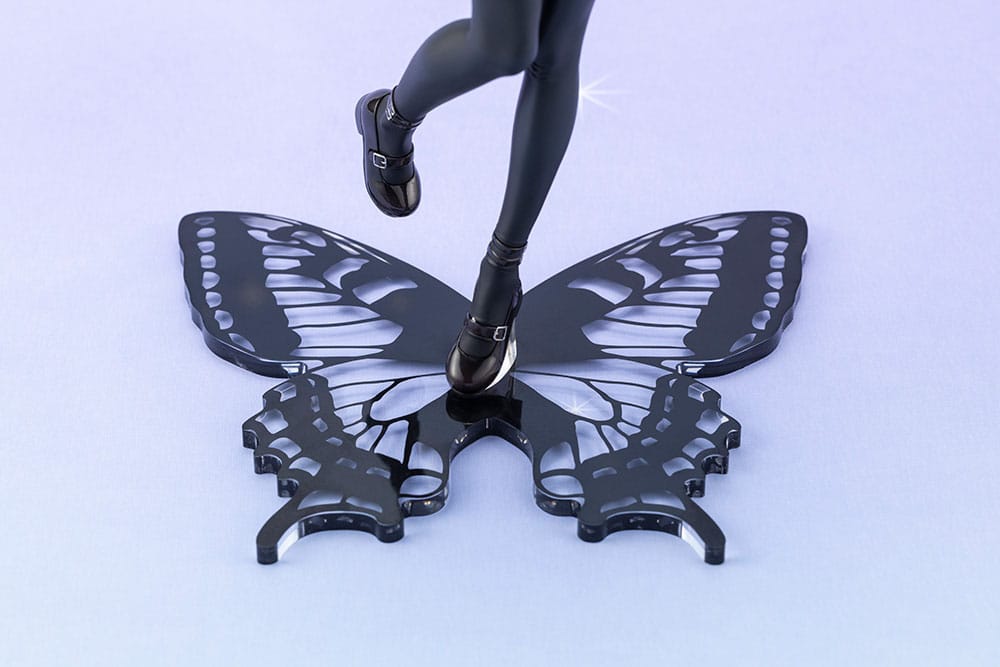 Teksturerne på uniformsjakken, sammen med detaljer som den ternede nederdel og bæltet, er omhyggeligt genskabt for at fremhæve hendes skoleuniforms gotiske og stilfulde look.